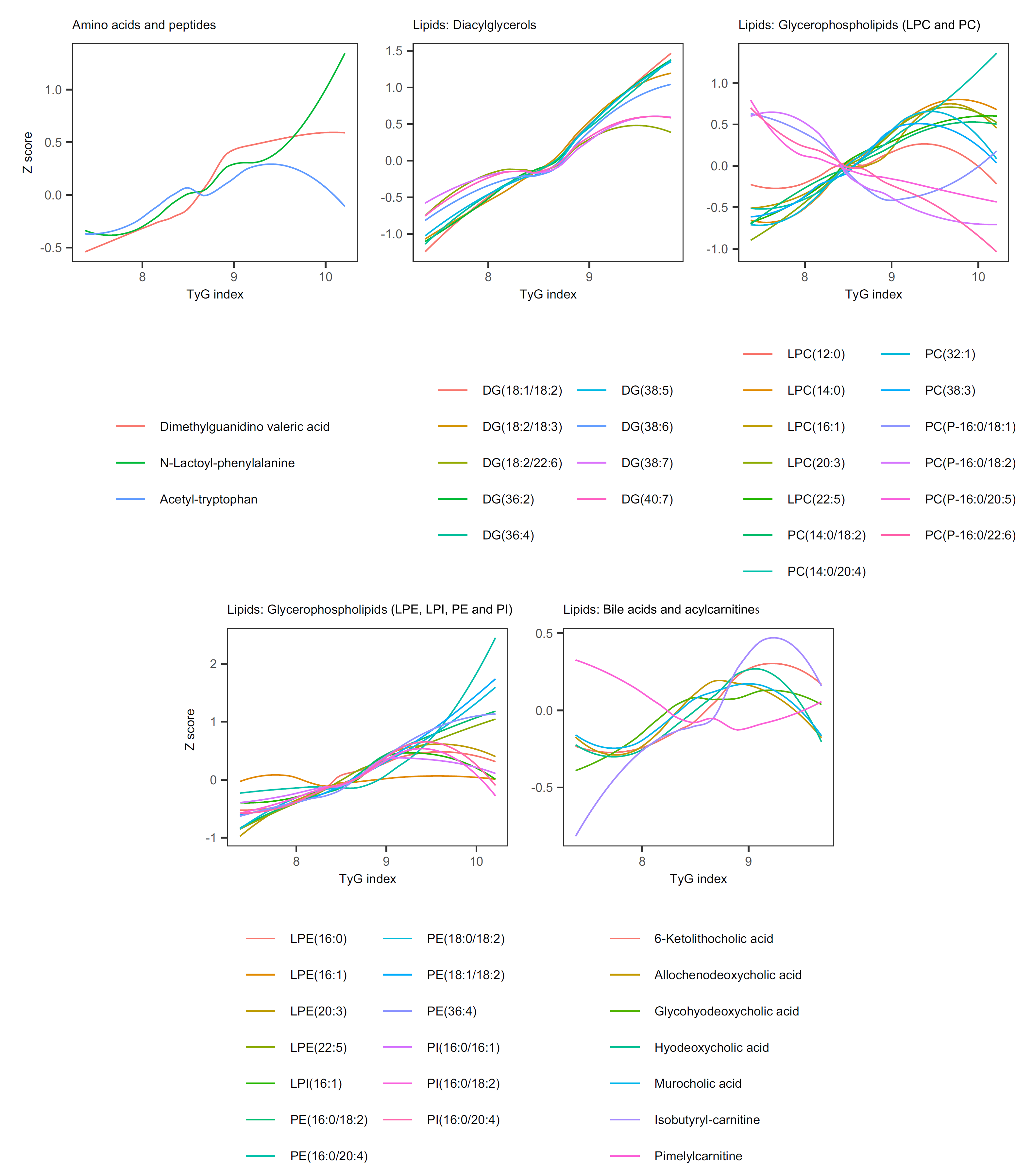 圖4:T2D相關(guān)代謝物與TyG指數(shù)相關(guān)